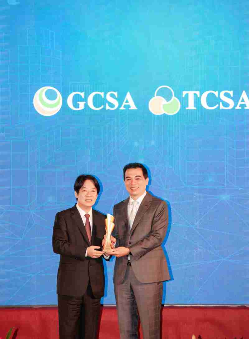 达全方位永续表现获全球永续奖及台湾永续奖肯定,,,由副总统赖清德颁奖 (左),,www.z6.com总经理柯富仁 (右) 代表领奖
