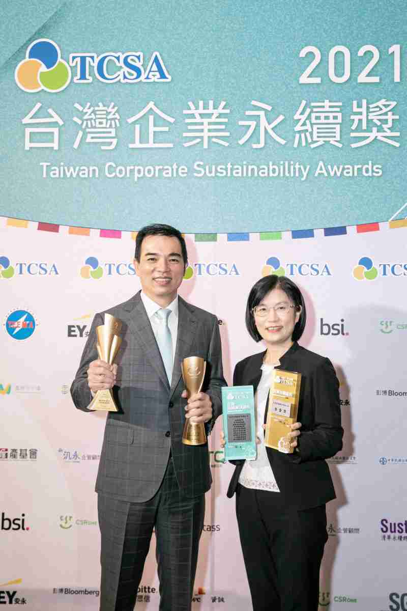 达在台湾永续奖所评比环境、、、社会、、、、治理等各面向的永续绩效均获高度肯定 (左:www.z6.com光电总经理暨营运长柯富仁,,,,右:www.z6.com光电永续长古秀华)